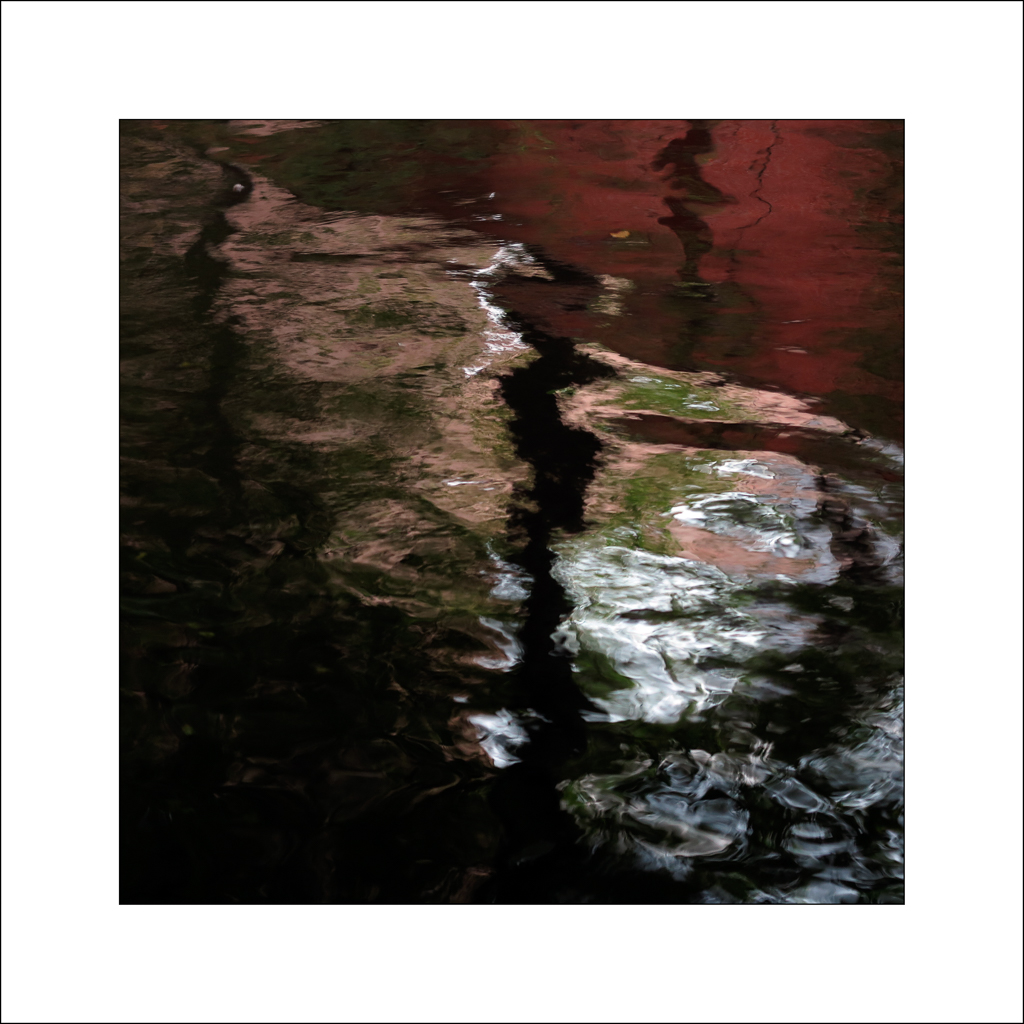 Whilst out in the city centre I was caught out by a thunder storm and very heavy rain. Taking cover under one of the canal bridges, I took a few abstract shots including railings reflected in the water: