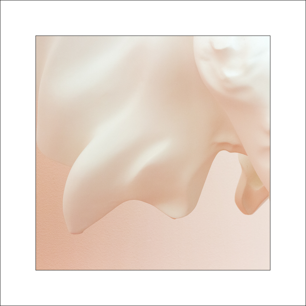 In the first exhibition, Marguerite Humeau explored the origin language through the mutation of the FOXP2 gene in combination with a series of elephant installations each representing a different stage of the life cycle. It was an imagined world where the mutation leading to language evolved in elephants rather than humans. The combination of sound, soft tones and lighting added mood and depth to the art which I tried to capture including the carpeted platforms - an integral part of tying the exhibits together through colour and shape: