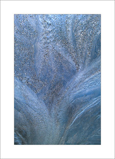 The dominate colour in sand is yellow so when it is inverted it changes to tones of blue. The original light areas show as a darker blue and the dark areas as a lighter tone. As a result, the mind stops constructing 'sand' and now starts interpreting texture, pattern and tone in an abstract form - which makes it more interesting as a composition.